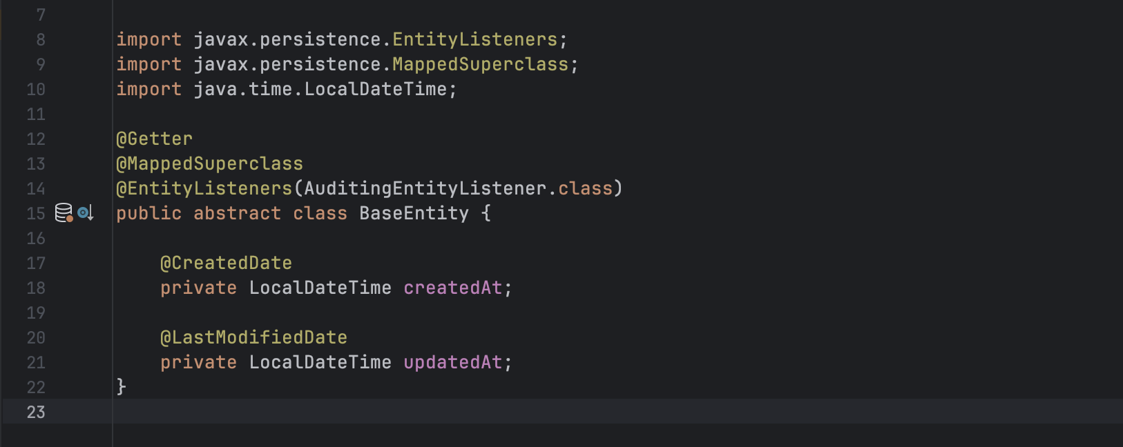 그럼 JPA Auditing 기능을 사용해 다시한번 BaseEntity를 작성해봅시다.