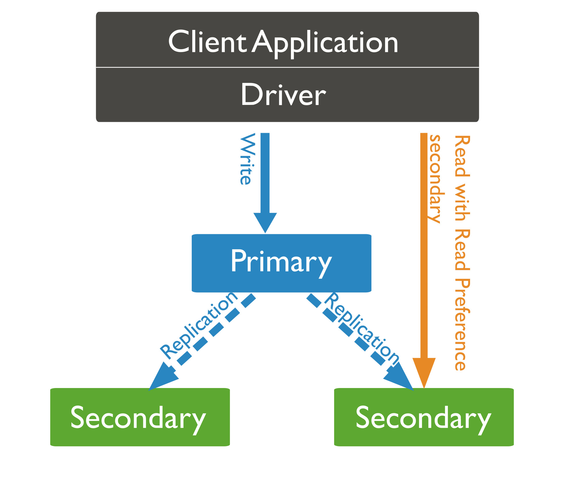 위의 그림과 같이 아무런 설정을 하지 않는다면 read, write 연산은 primary 노드에서 수행합니다.