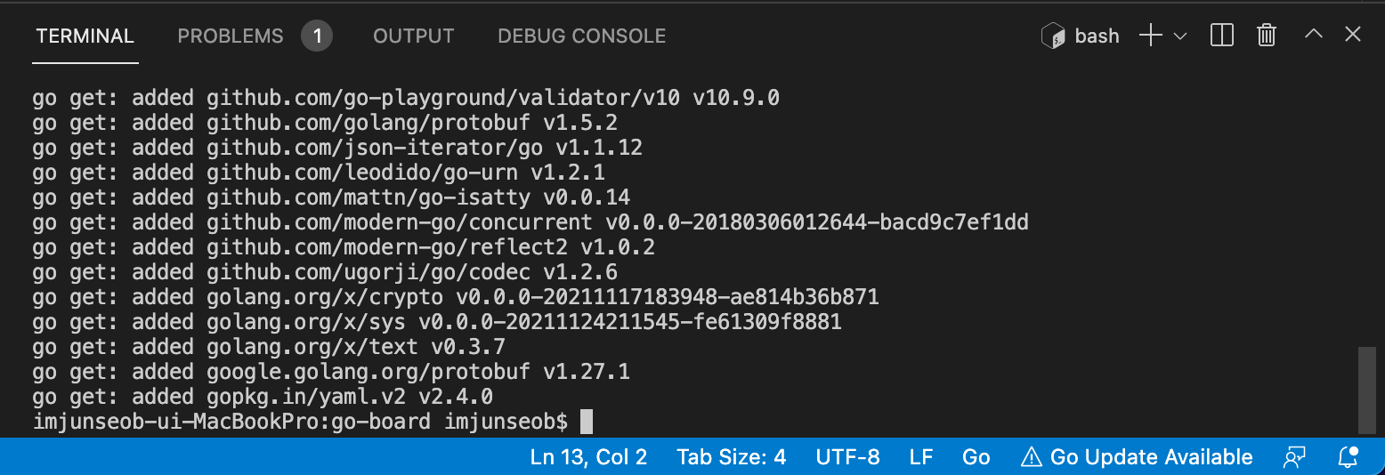 go 에서는 go get <패키지>로 설치가 가능합니다. -u 옵션을 추가하면 종속성 패키지까지 함께 업데이트 해줍니다.