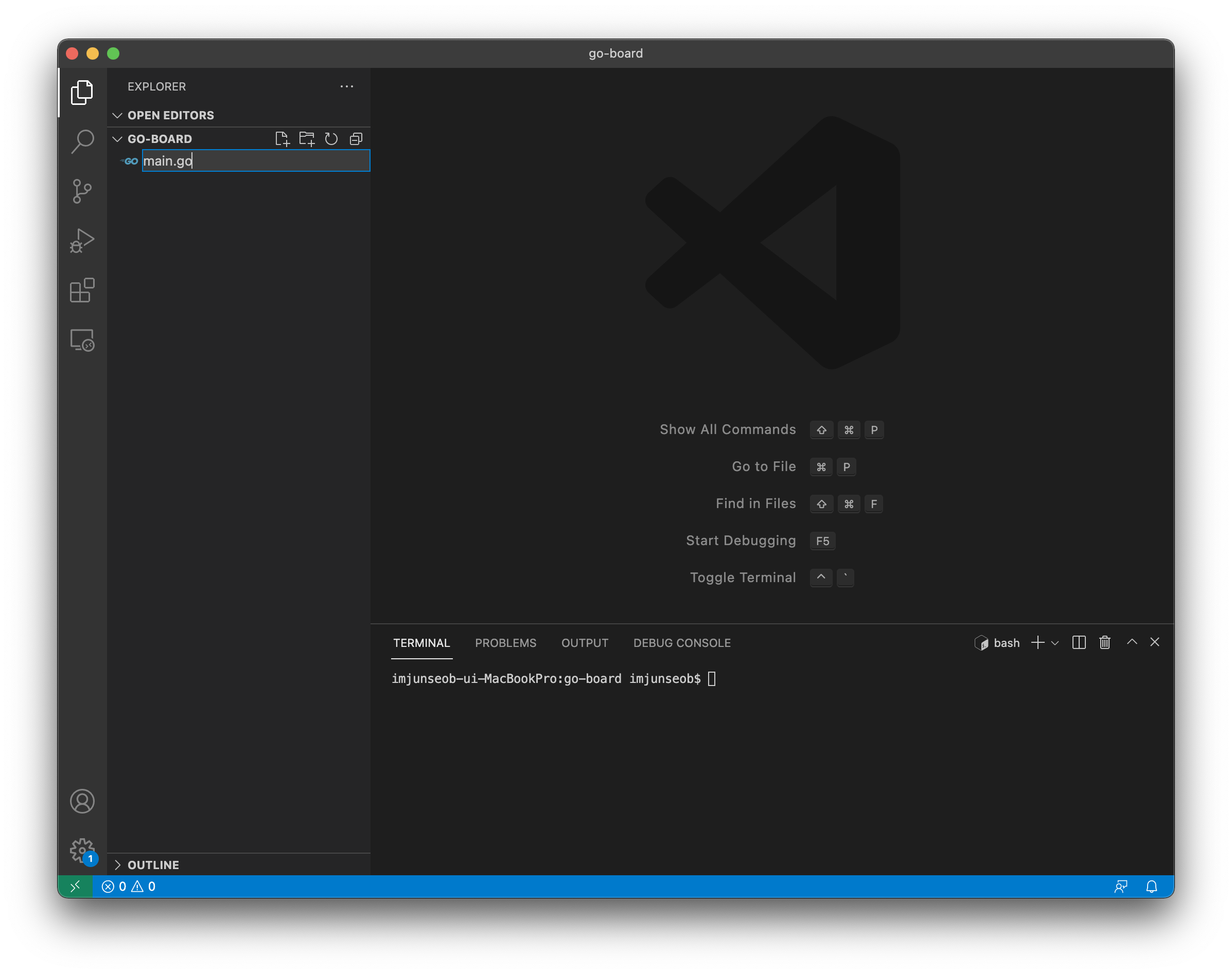 그리고 파일을 하나 만들어 줍니다. (main.go)