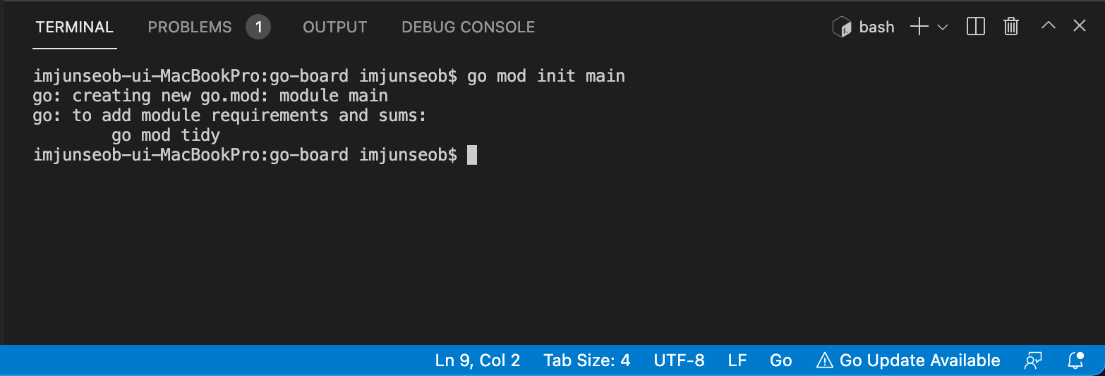 그럴경우 go mod init <패키지 이름>을 실행해줍니다.